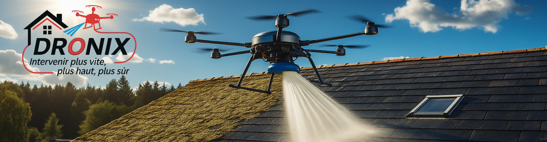 Gagnez en sécurité, en rapidité et en précision : Dronix traite vos toitures sans contact grâce à la pulvérisation par drone. Basés à Châteaubriant, nous intervenons rapidement, même sur les zones difficiles d’accès.